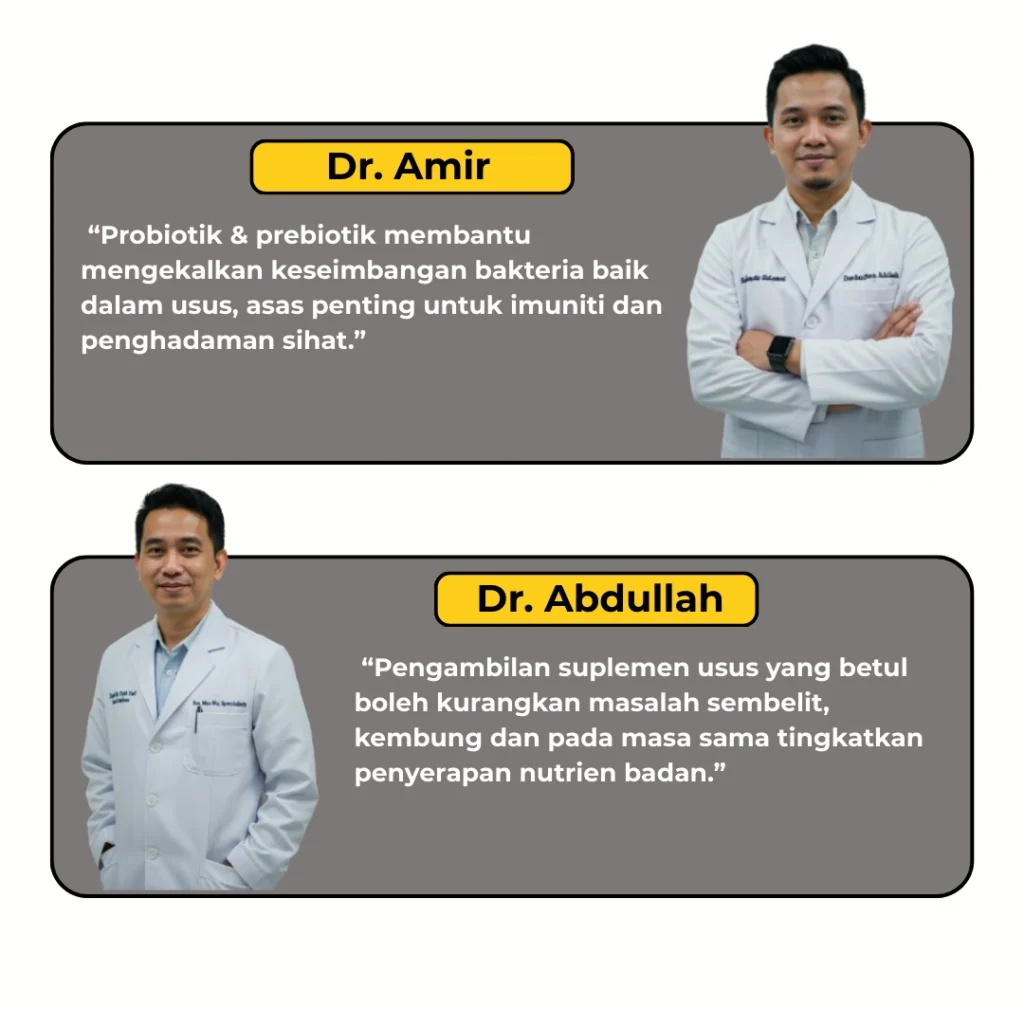 ✅ Jimat & Praktikal Tak perlu beli suplemen berasingan – kesihatan usus, imuniti & penyerapan nutrien dalam 1 kapsul sahaja. Mudah diamalkan & senang dibawa ke mana-mana.